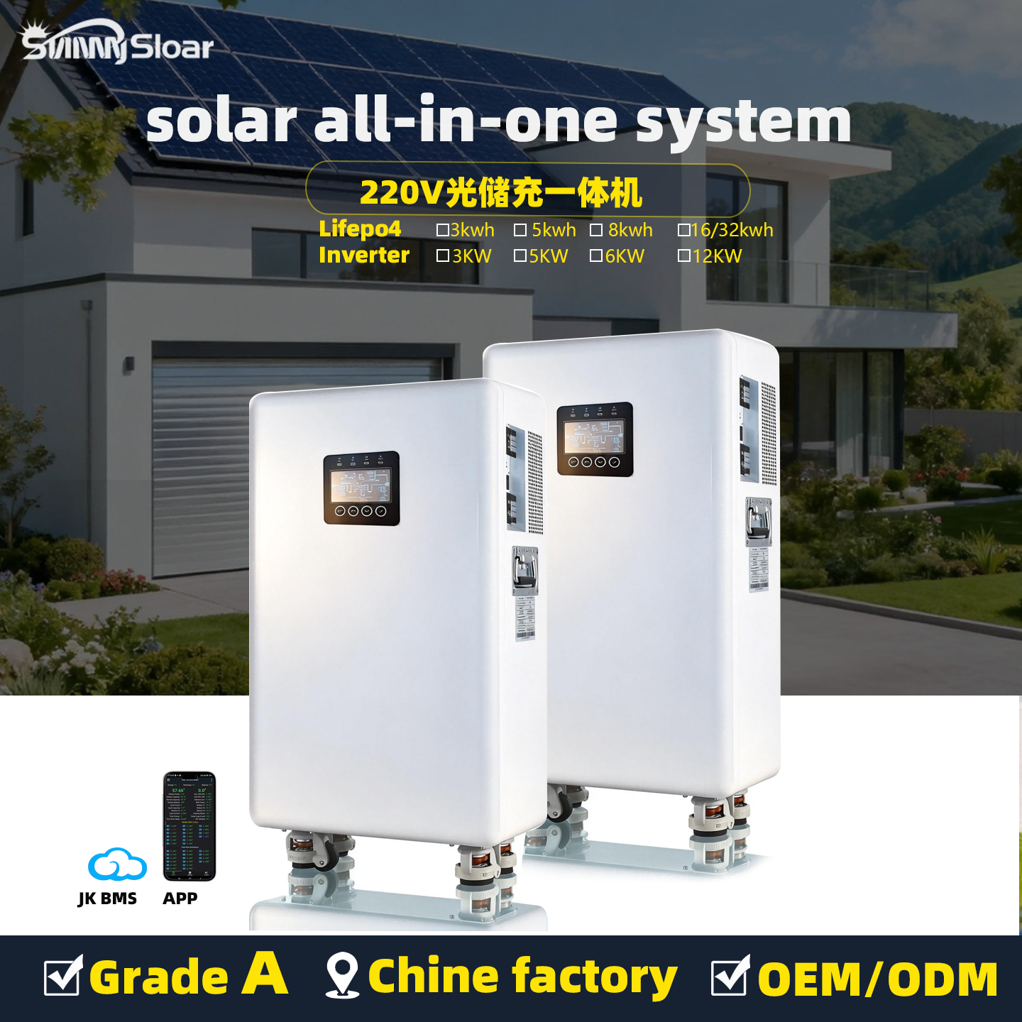 6KW16KWH all-in-one 220V output off grid solar power generation system